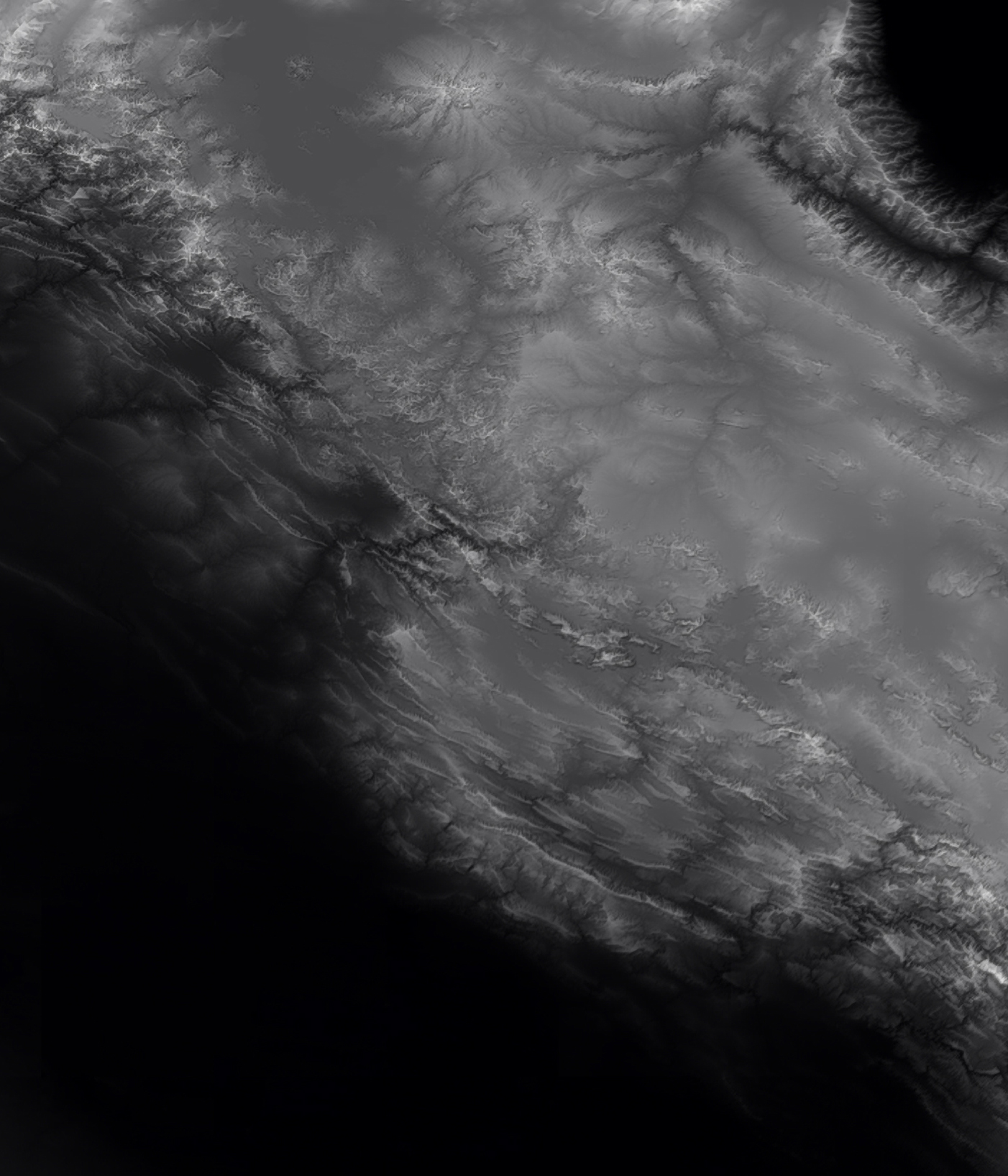 ![]() Sample area of Eastern Iraq Full map 35º East to 52º East, 24º North to 40º North Includes parts of Saudi Arabia, Iran, Israel, Lebanon, Jordan, Turkey and Kuwait For full area coverage of this map see Full map File sizes: Relief map decompressed 44 MB, JPEG 4 MB Dimensions 4,075 X 3,831 pixels (40 X 38 inches at 100 dpi) Features JPEG relief map in 255 graduation of grayscale based on elevation Black at sea level, white is highest mountain elevation ![]() ![]()